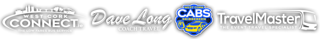 Dave Long Coach Travel is proudly part of the WCC Group – West Cork’s most trusted transport company. Also part of the WCC Group are West Cork Connect, Kinsale Connect, TravelMaster.ie, West Cork Transfers and West Cork Cabs.